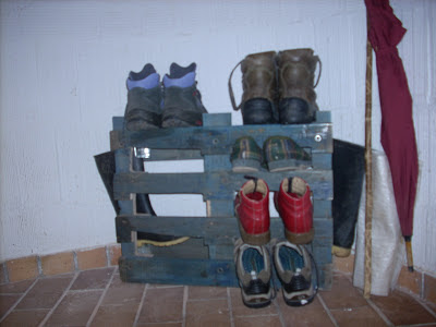 Zapatero hecho con un palet tal cual. Gracias por llevar a cabo ideas tan prácticas y sencillas de realizar y mostrarnos el uso cotidiano que les dais.
